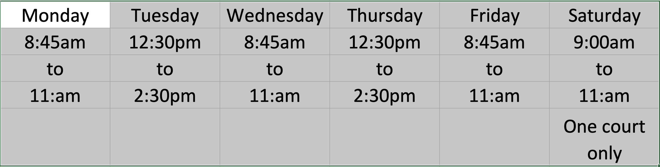 When playing outside is not an option, the YMCA offers pickleball Monday through Saturday with 3 courts. Check the schedule below.