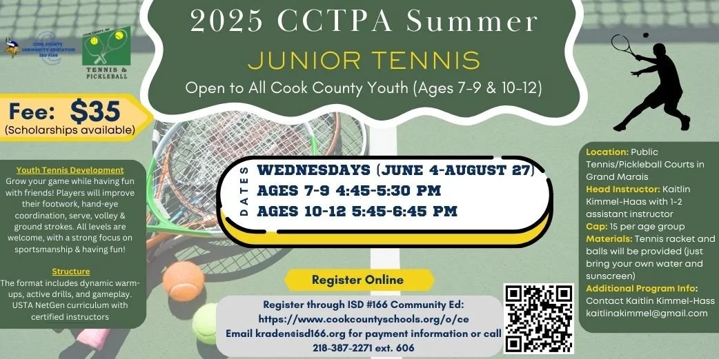 Where: Grand Marais Tennis Courts (courts 4 & 5) - we will extend into other courts as needed